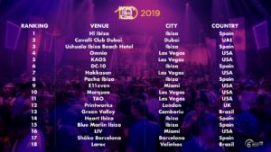 Pelo segundo ano consecutivo, o club Hï Ibiza ficou com o primeiro lugar, seguido do Cavalli Club em Dubai, no segundo lugar e do Ushuaïa, também de Ibiza, no terceiro lugar.