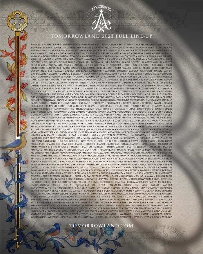 O Tomorrowland, um dos festivais de música mais influentes do mundo, revelou hoje sua enorme programação para 2023 por meio de um pôster com mais letras miúdas do que uma apólice de seguro de carro. E com mais de 600 artistas, é um dos maiores da história do festival.